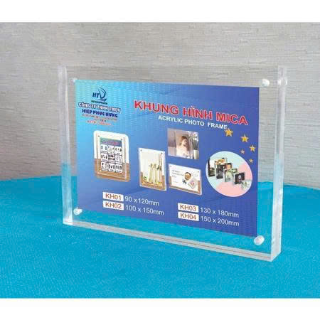 – Hai miếng Acrylic dày 10mm được liên kết với nhau để giữ ảnh cố định. Sản phẩm không có chân đế, chỉ đơn giản đặt xuống bàn cũng có thể đứng vững được.